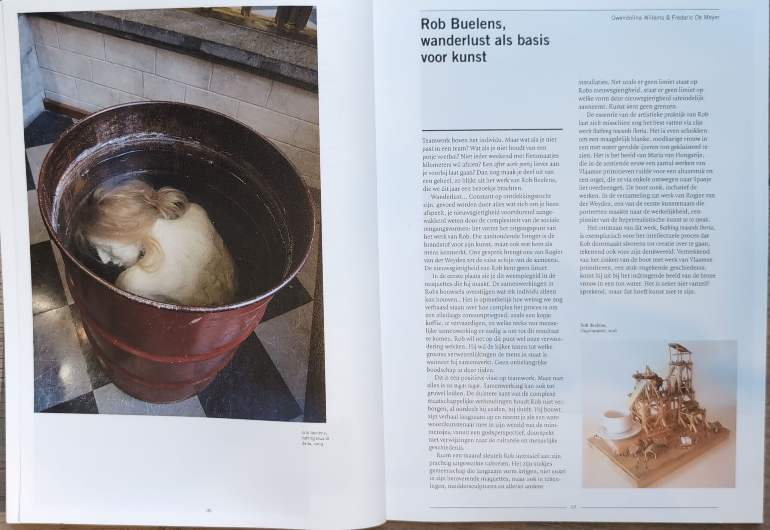 Each model contains a world so rich in and of itself that we might almost forget that visual communication is possible with other models and with the surrounding environment as a whole. When exhibited together, the visual presence of the artworks expands. The more miniature worlds are locked together, the greater the interplay of scenes and the broader the scope of their meaning. That dialogue also plays out between the models and the artefacts – artistic, archaeological, or otherwise – that are present in the museum where they are exhibited. Due to their accessible and small-scale nature, Buelens’ scenes integrate wonderfully with the other elements in the museum. Their presence is neither ostentatious nor disruptive. Inevitably, however, their presence does influence how we view the stories of the other museum objects. With their relativistic humour, they have the ability to keep us humble. They also serve to illustrate the fact that there is so much intelligent and emotional life beyond what we can see – just over the horizon, in other times and cultures, and spanning innumerable subjects. Above all, we learn that human endeavour stands or falls on our capacity for cooperation. Food for thought in a culture of narcissism.