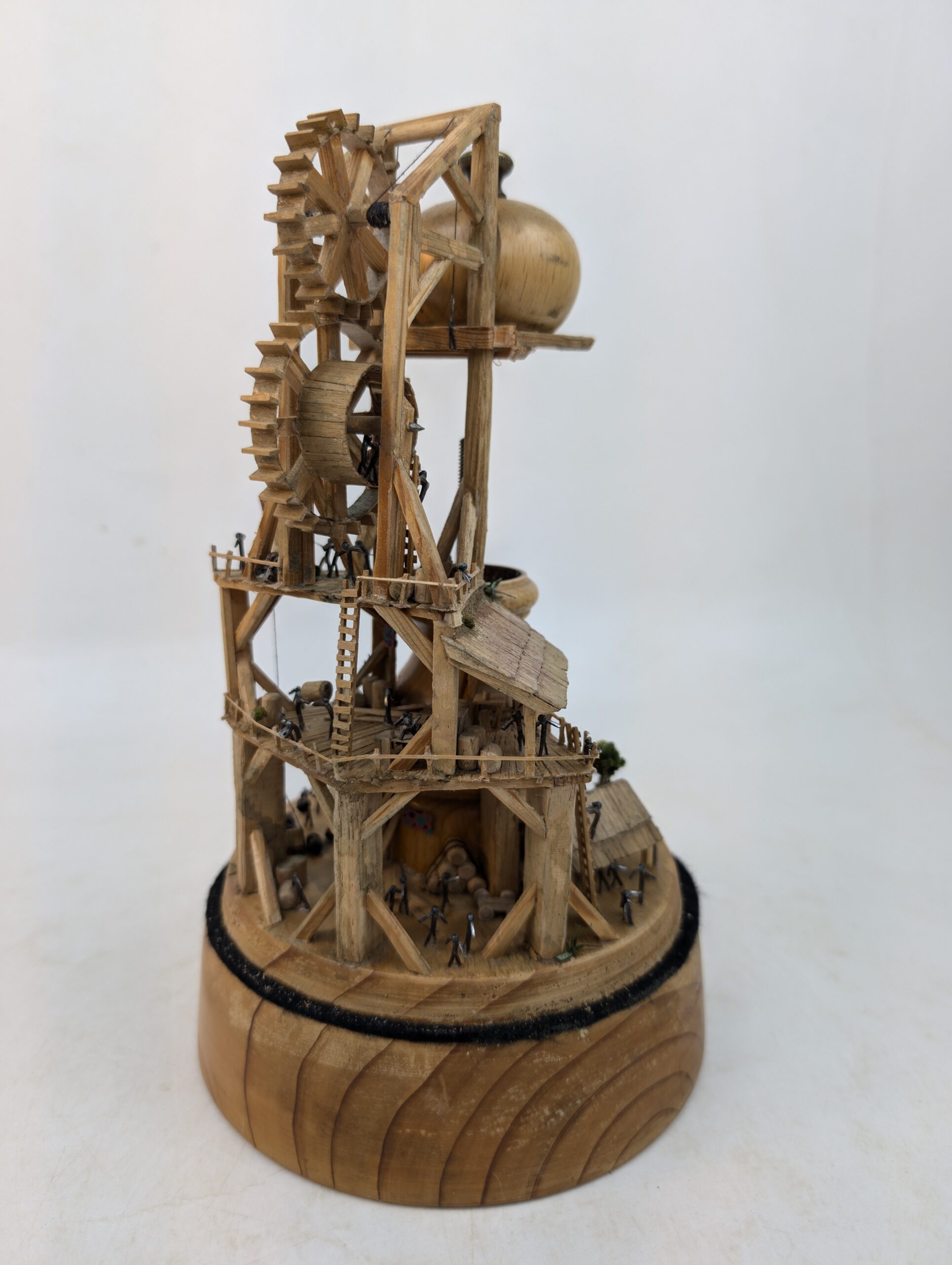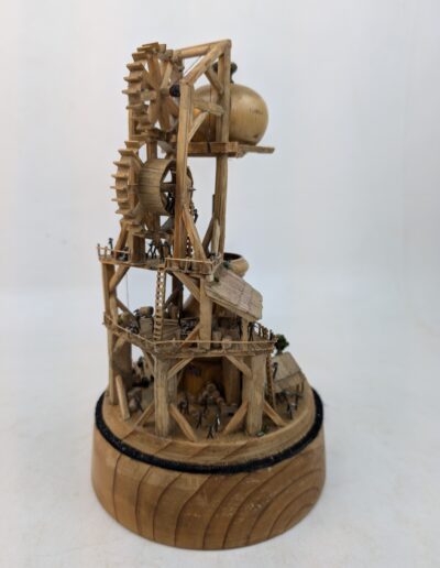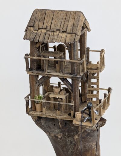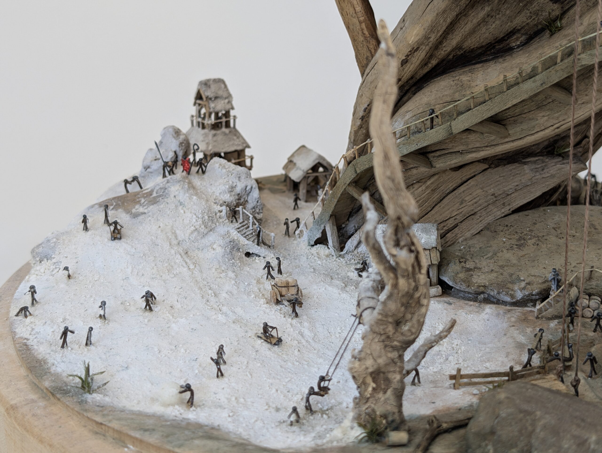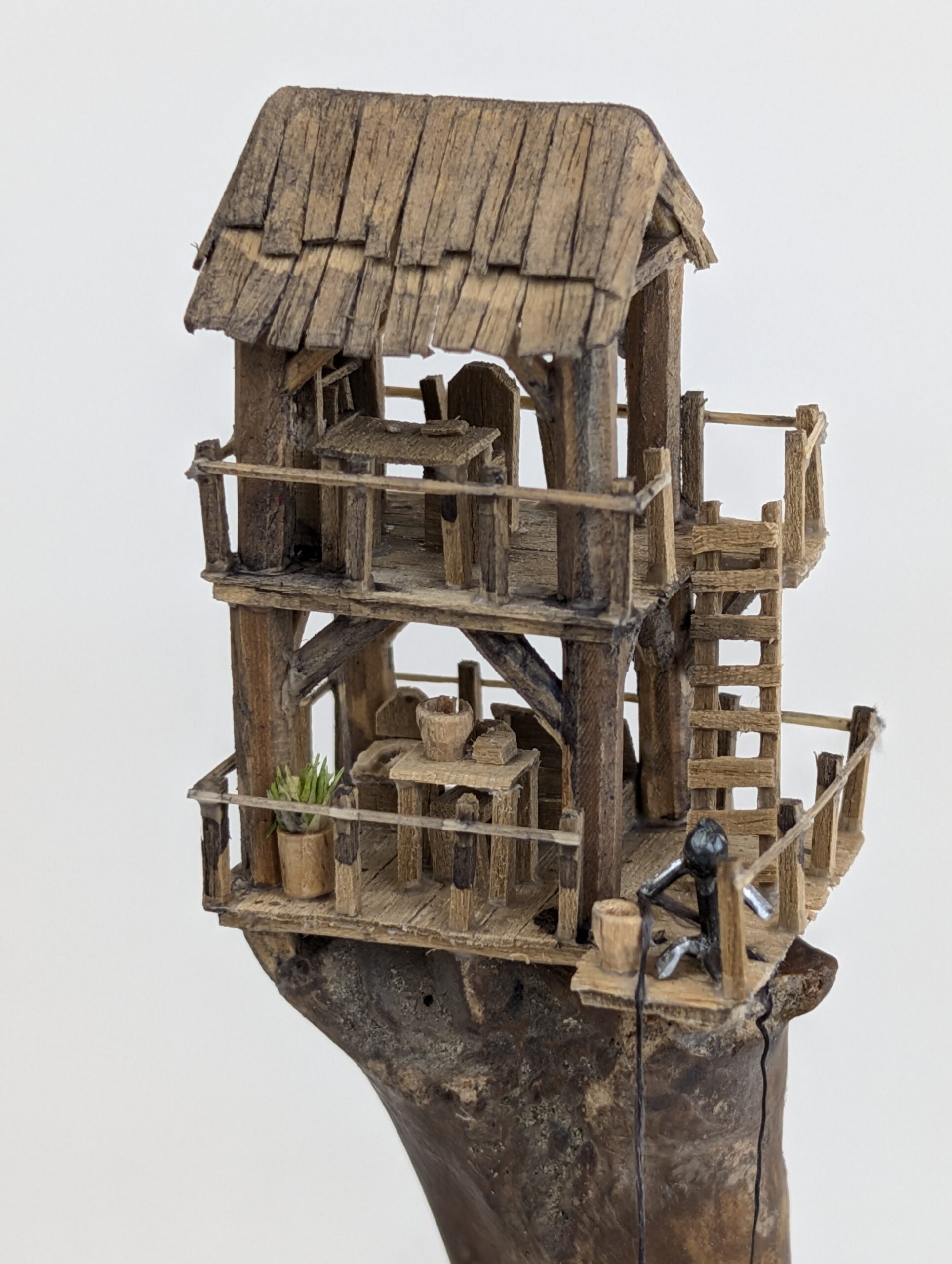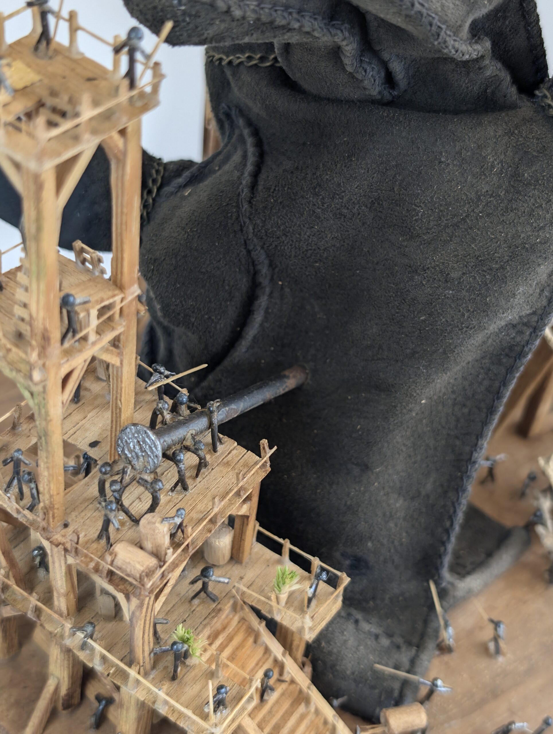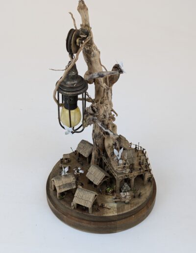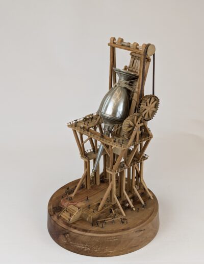 The models which I produce are made of wood, iron wire, sewing thread, and often everyday objects like spoons, sugar cubes, coffee mugs, etc. The very small scale of the miniature people crowding upon the model, is to impose a gods eye view on the spectator. This displays the work in crowd as the primary subject. In this vision we define ourselves as human in our combined efforts, dreams, and accomplishments. What does bind this characters is that they are all working together towards a common goal. This off course, turns the subject towards concepts like community and the engagements of cultures, and nations in history.