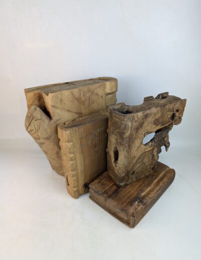 Rob Joins the story the wood tells itself to the new meaning he wishes to imbue into it. Most Wood Rob uses in his sculptures is recycled, Unnecessary sacrifice is often quite bitter.
